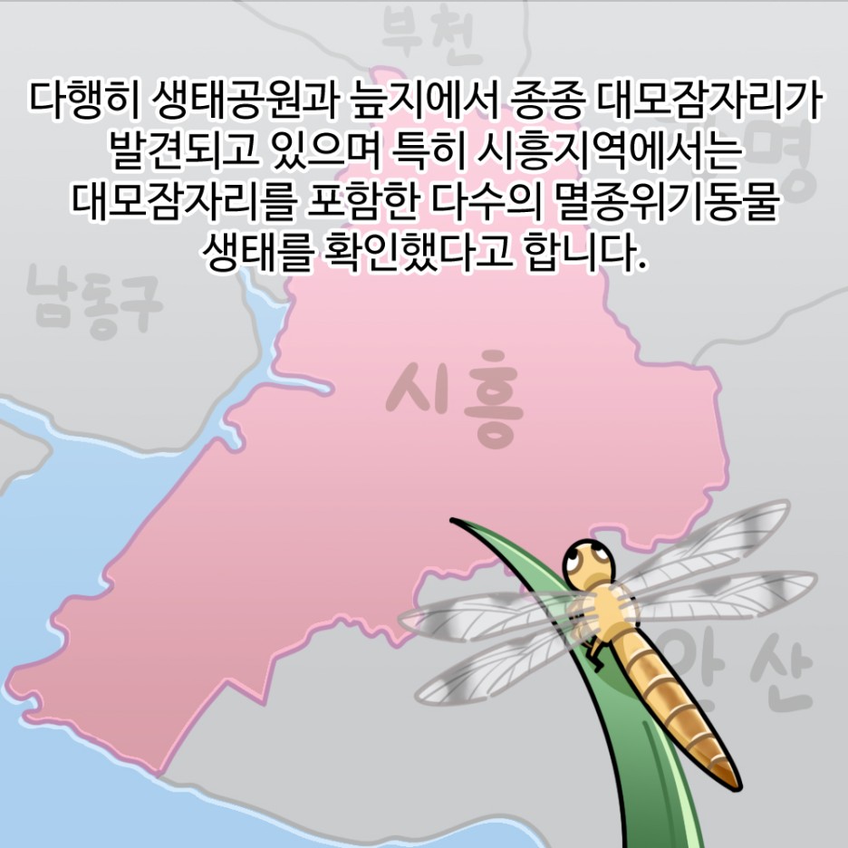 특히 시흥지역에서는 대모잠자리를 포함한 다수의 멸종위기동물 생태를 확인했다고 합니다.