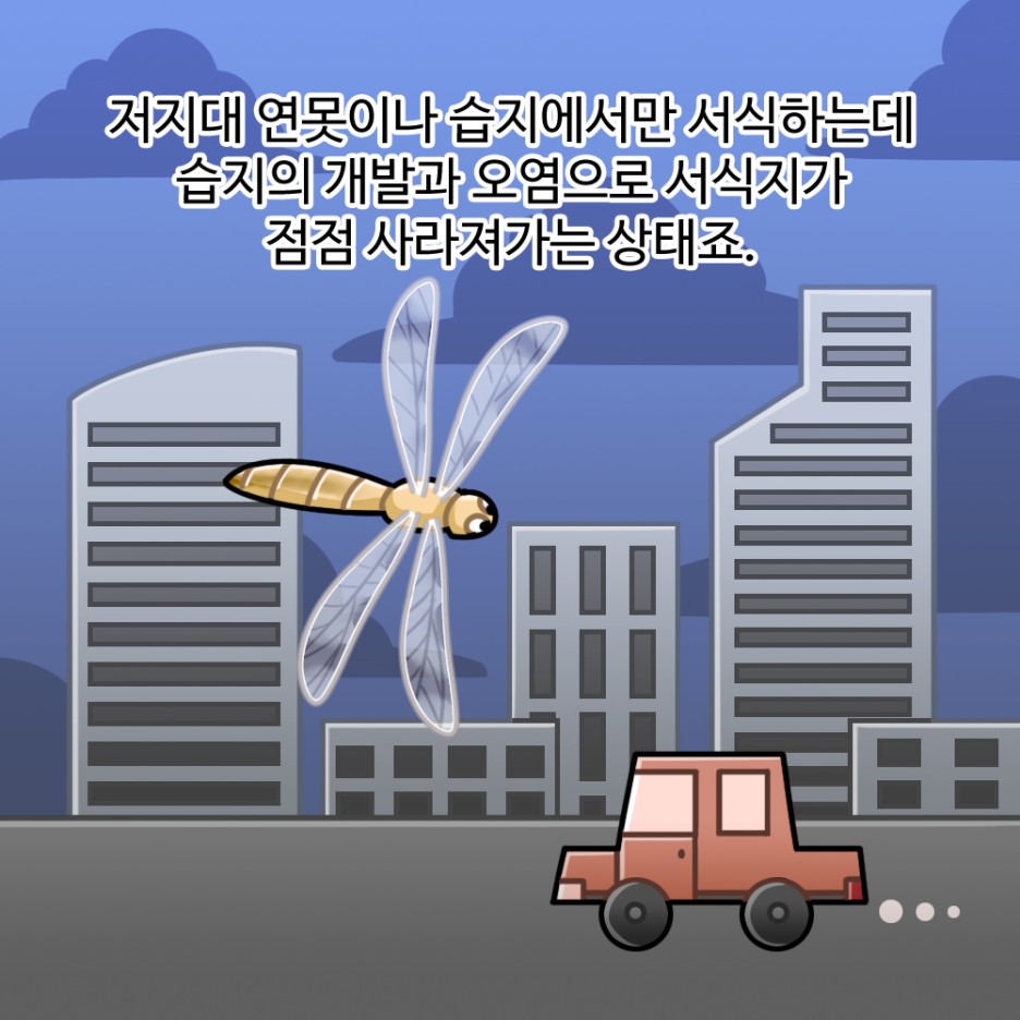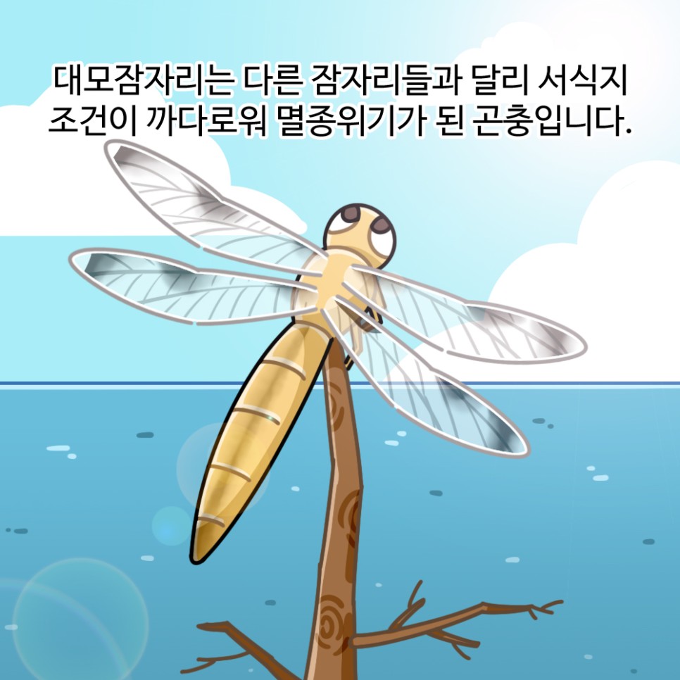 대모잠자리는 다른 잠자리들과 달리 서식지 조건이 까다로워 멸종위기가 된 곤충입니다.