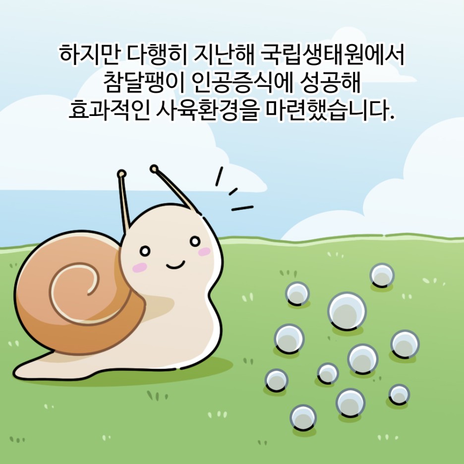 하지만 다행히 지난해 국립생태원에서 참달팽이 인공증식에 성공해 효과적인 사육환경을 마련했습니다.
