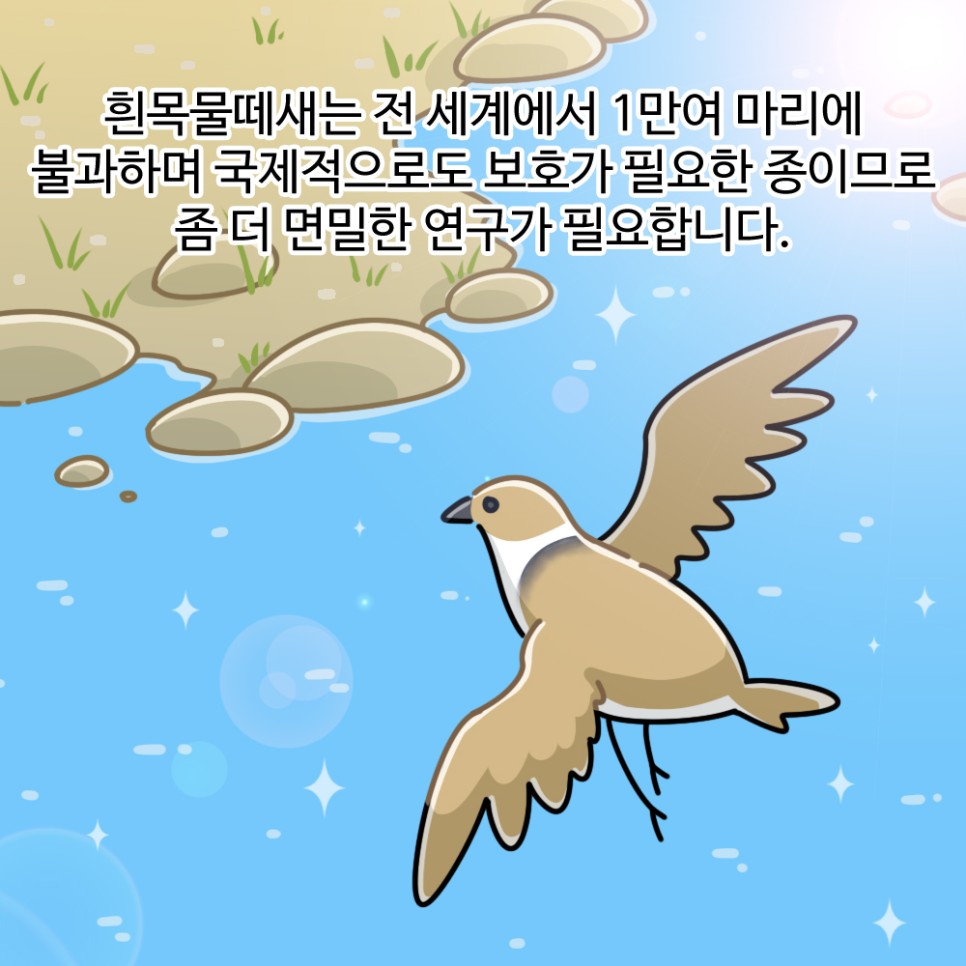 흰목물떼새는 전 세계에서 1만여 마리에 불과하며 국제적으로도 보호가 필요한 종이므로 좀 더 면밀한 연구가 필요합니다.