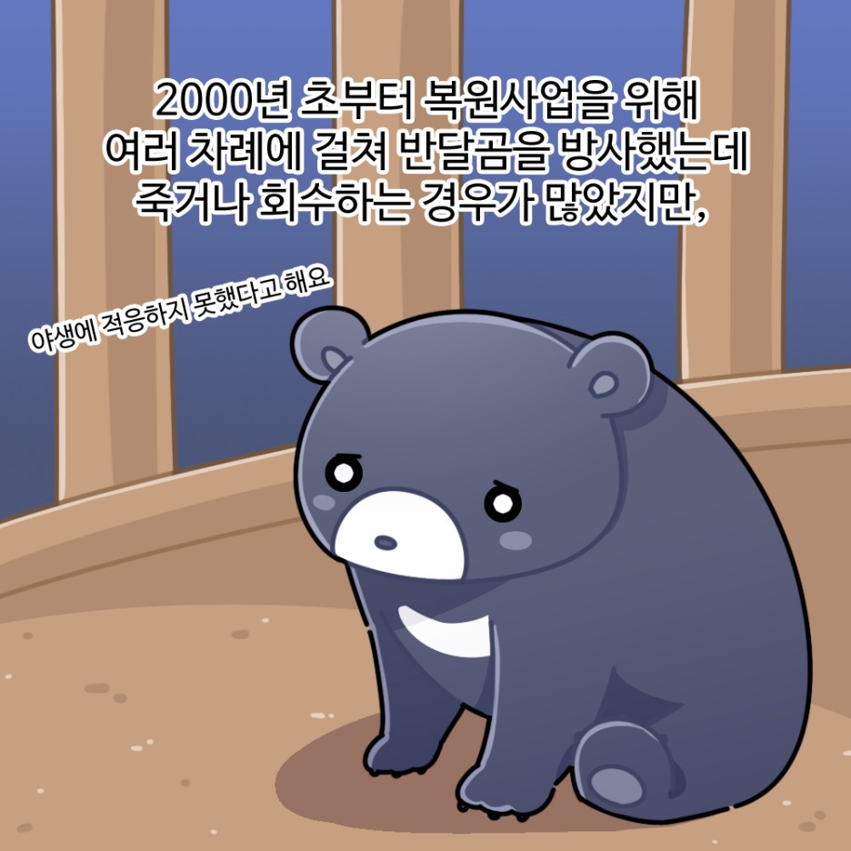 2000년 초부터 복원사업을 위해 여러 차례에 걸쳐 반달곰을 방사했는데