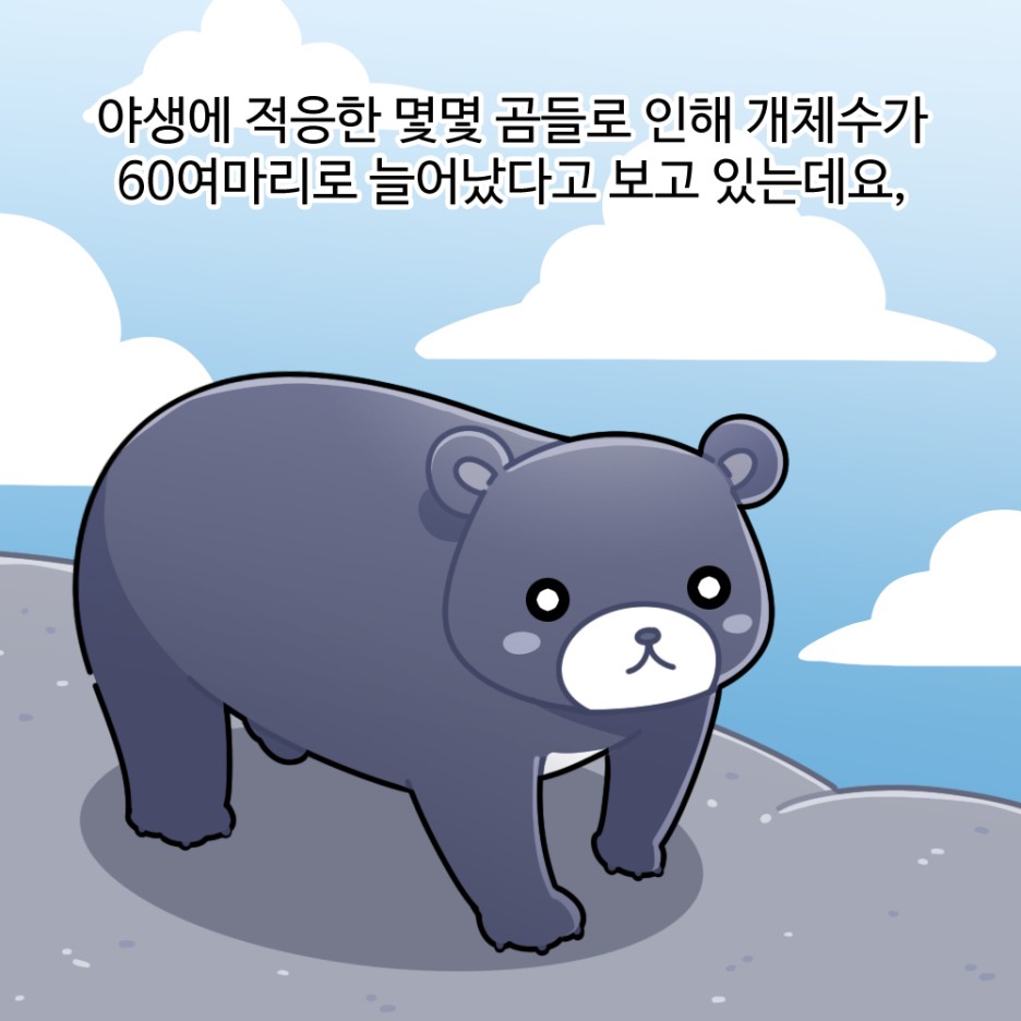 야생에 적응한 몇몇 곰들로 인해 개체수가 60여마리로 늘어났다고 보고 있는데요.