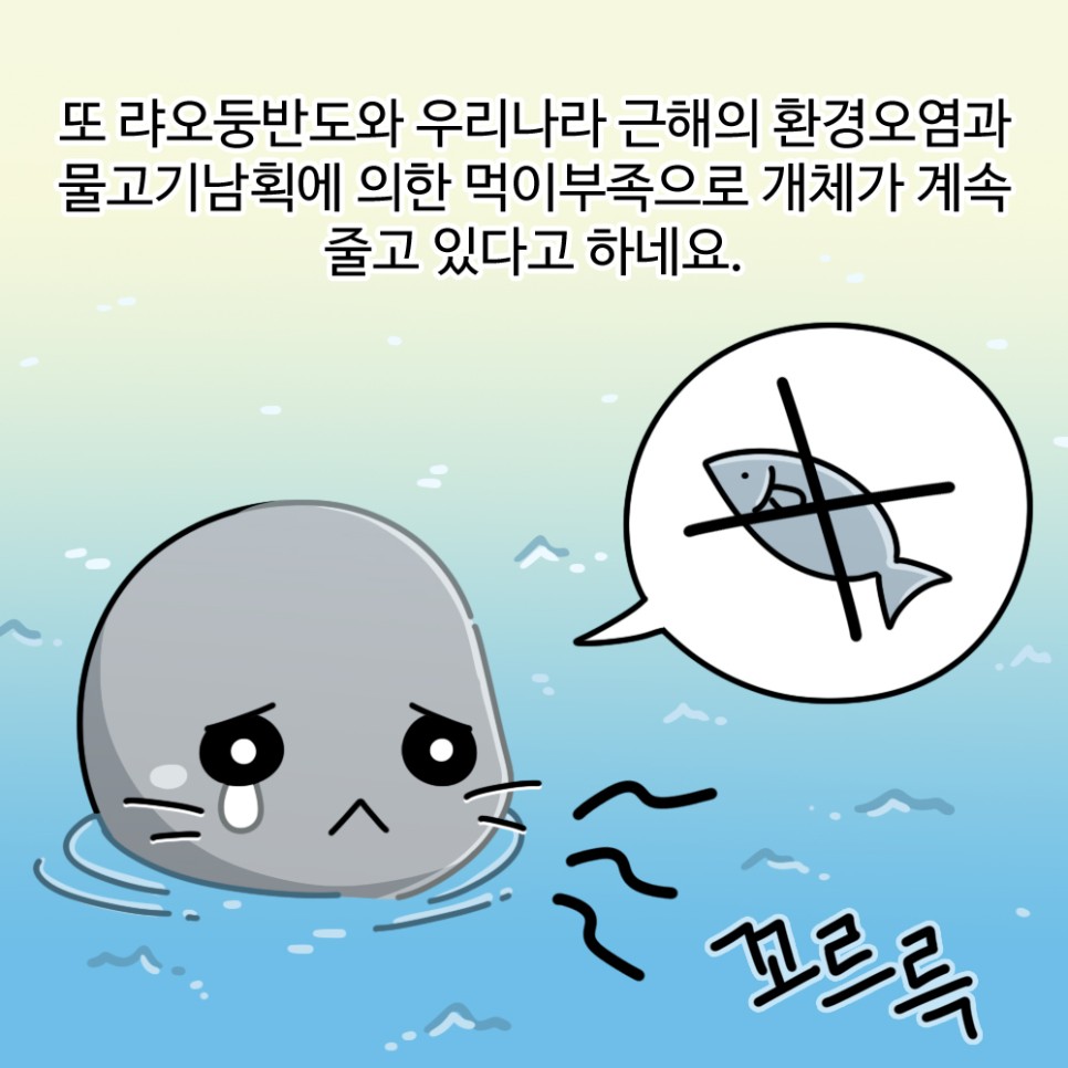 또 랴오둥반도와 우리나라 근해의 환경오염과 물고기남획에 의한 먹이부족으로 개체가 계속 줄고 있다고 하네요.