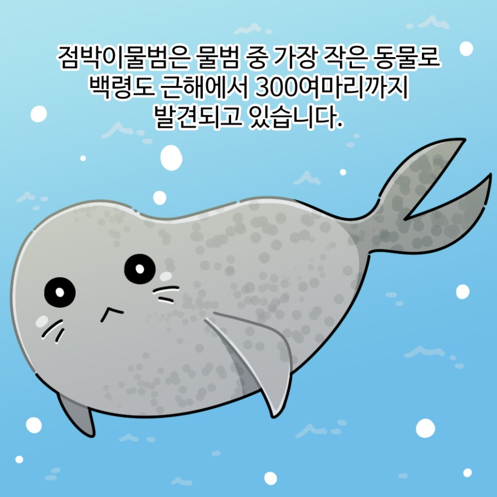 점박이물범은 물범 중 가장 작은 동물로 백령도 근해에서 300여마리까지 발견되고 있습니다.
