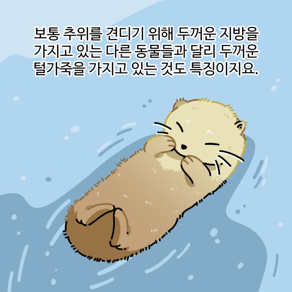 하지만 강에서 사는 수달과 달리 바다에서 사는 포유류입니다.